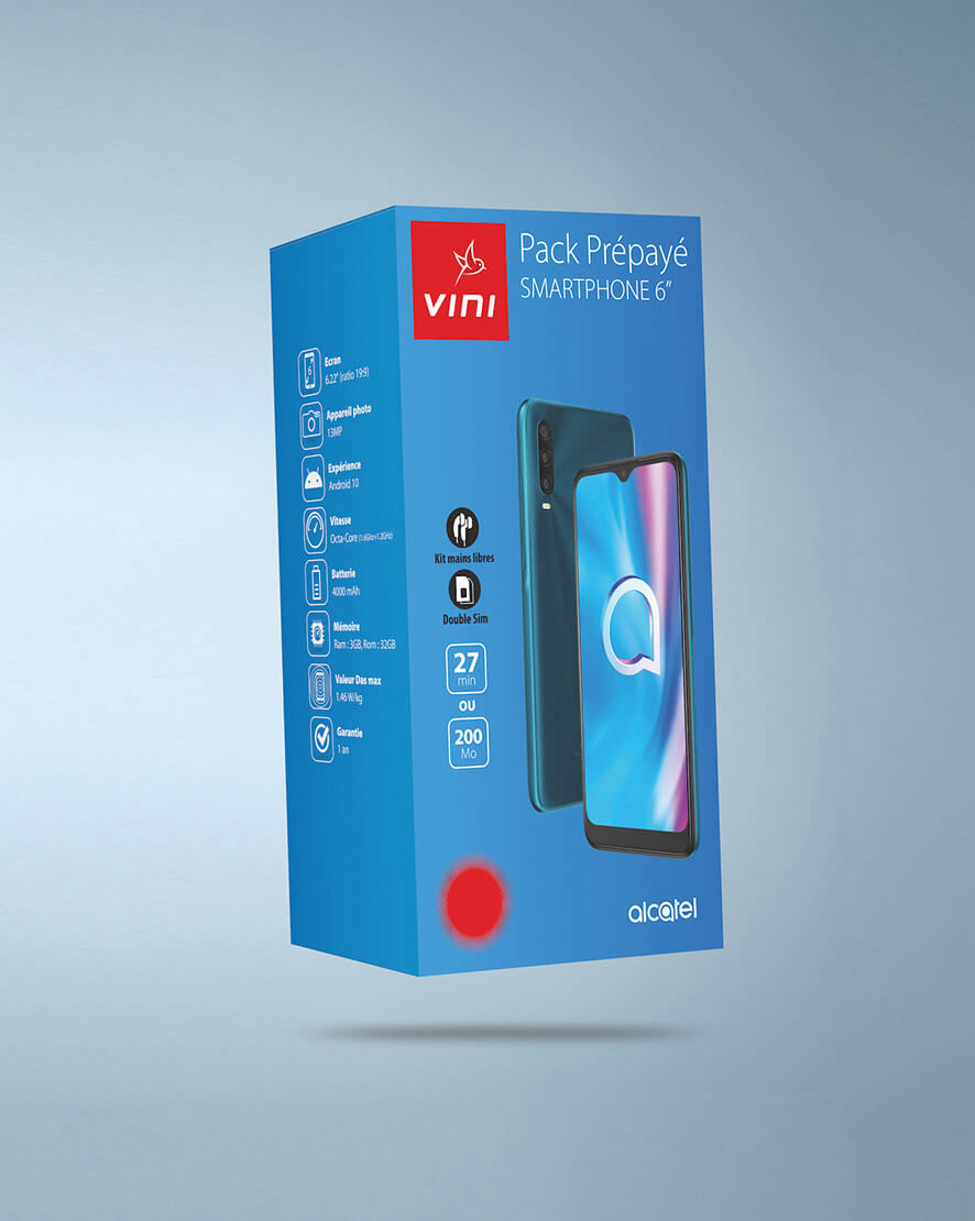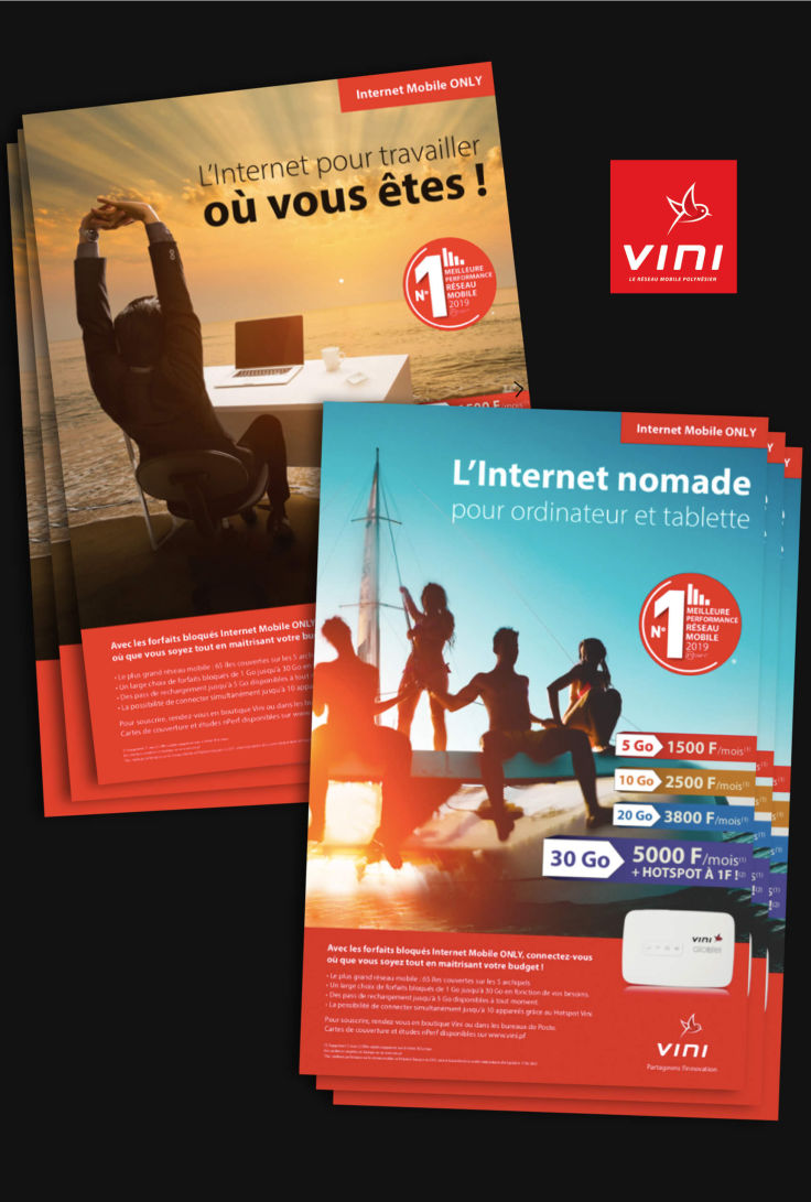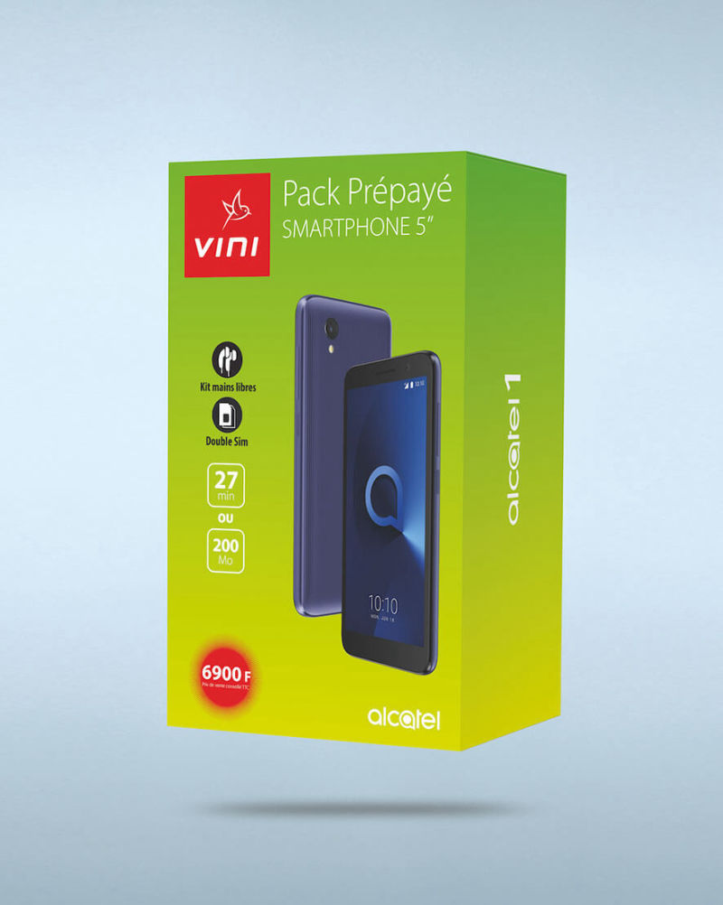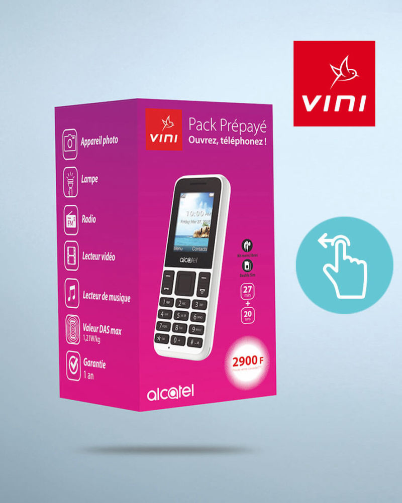 Réalisation des packagings pour les téléphones Pack Prépayés VINI. Travail réalisé en tant que patenté au sein de l'agence Wake Up à Papeete.