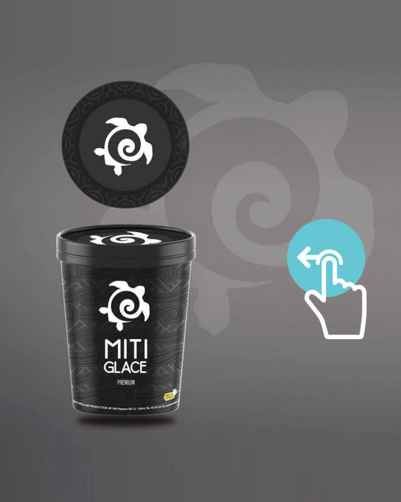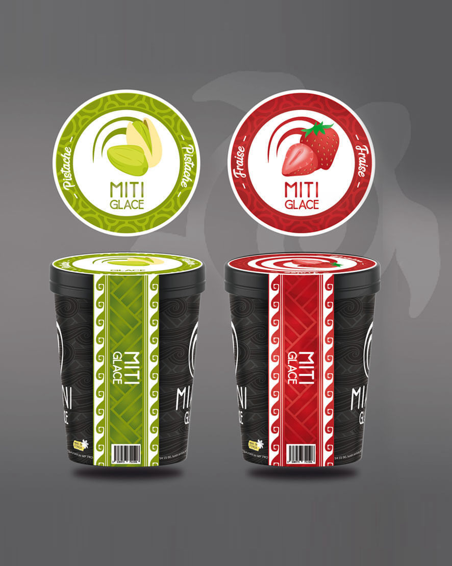 Le design du pot représente des éléments graphiques d'air et de carapace, pour évoquer le froid et la dureté de la glace.
